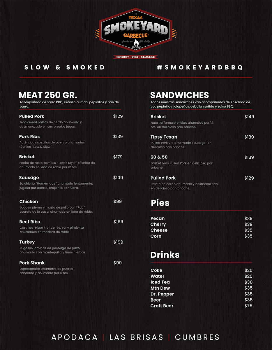 Welcome to TEXAS SMOKEYARD BARBECUE, where the essence of authentic Texan barbecue comes alive in Apodaca, Mexico. This culinary treasure offers a menu that celebrates classic smoked meats, each dish prepared with precision and passion.